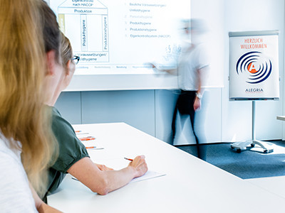 Unser Tochterunternehmen ALEGRIA hat sich auf die praxisorientierte Aus- und Weiterbildung von Führungskräften und Mitarbeitern in Betriebs-, Lebensmittelhygiene sowie Reinigungs- und Hygienetechnik spezialisiert. Die Mitarbeiter der Akademie schulen in München, Hamburg und Köln eine Vielzahl an Teilnehmern zu allen Themen rund um die Hygiene. Allein in München stehen ALEGRIA über 2.000 qm Praxisschulungsfläche zur Verfügung – ausgestattet mit modernster Technik im Bereich Lebensmittelverarbeitung und Textilhygiene, Reinigungschemie und Verfahrenstechnik und allen zeitgemäßen, objektspezifischen Materialien und Designs.