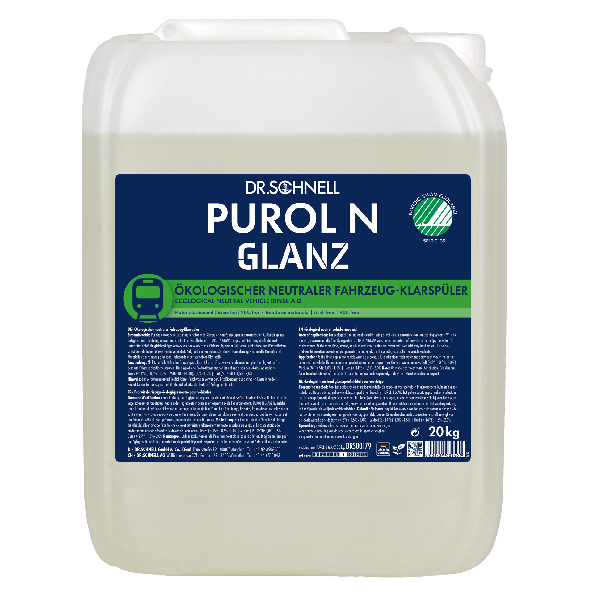 Discover the future of environmentally friendly vehicle exterior cleaning with our innovative PUROL N product system. As a pH-neutral and sustainable solution, PUROL N sets new standards in the cleaning industry and is certified as environmentally friendly with the renowned Nordic Swan Ecolabel.