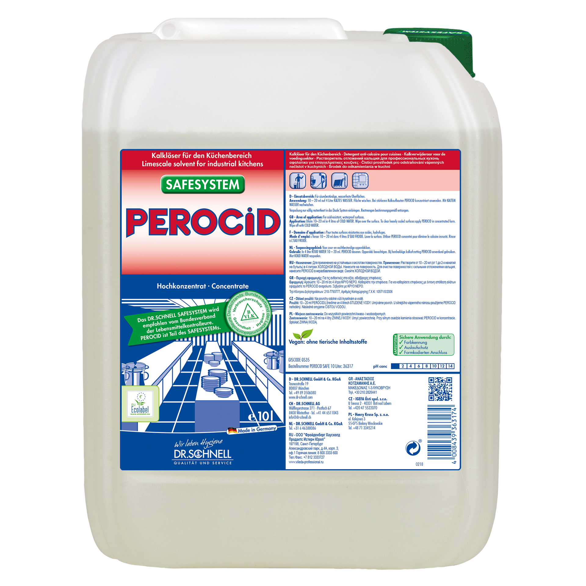 PEROCID in Abhängigkeit des Schmutz-/Kalkaufkommens dosieren. Zur Reinigung großer Flächen 0,25-10%ig anwenden. Zur Reinigung stark verkalkter Flächen unverdünnt anwenden. Anschließend mit klarem Wasser nachwaschen.